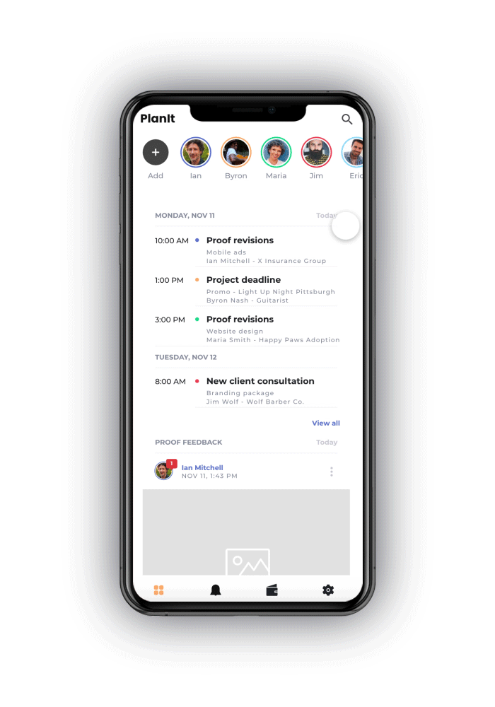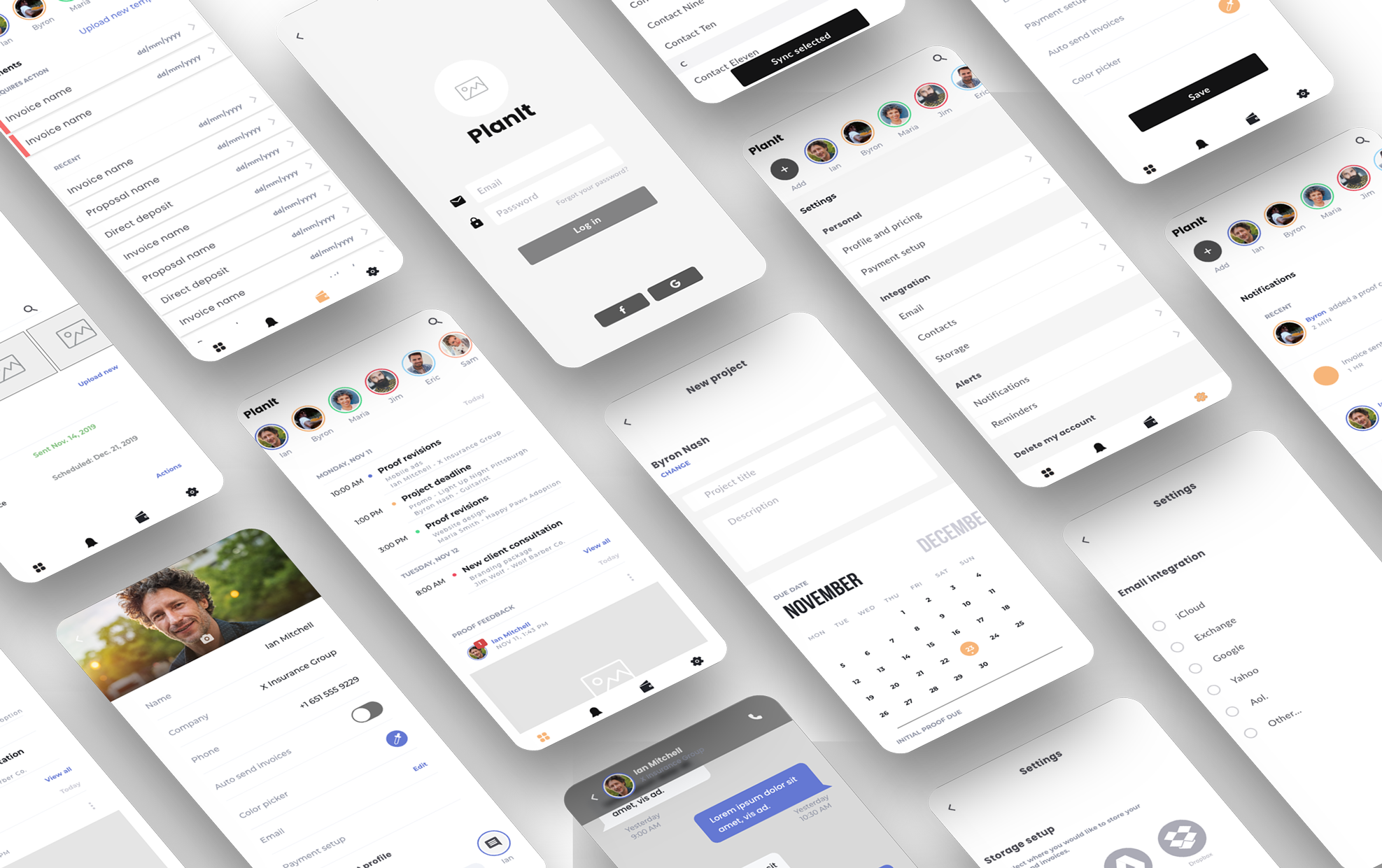 PlanIt is a concept for a project management mobile application. It provides an integrated workspace for freelance designers who typically have to juggle separate platforms for client contact, proofing, and invoicing.